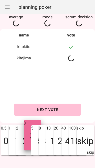 メンバーが出すカードによってポイントを決める方法は、平均値、最頻値など様々ですが、私たちのチームでは次のルールでストーリーポイントを決定しています。