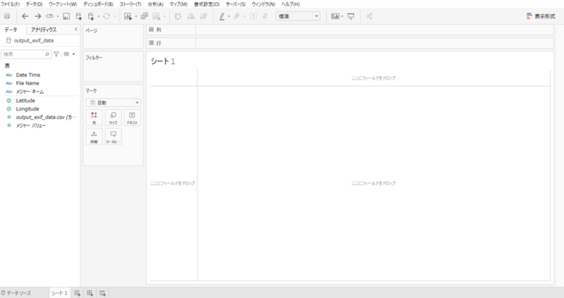 Tableauへ写真データをインポートするには、写真の詳細情報(Exif情報)をCSVへ出力して、そのCSVをデータソース化する必要があります。